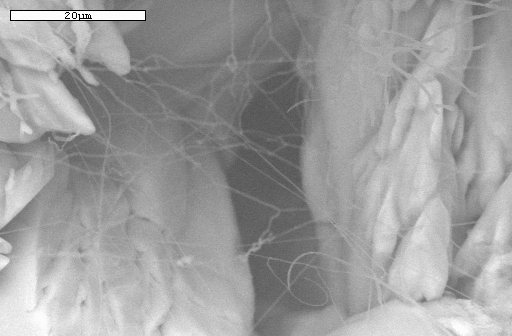 SEM image (7000x) of filaments in the corrosion pit in the outer wall rock