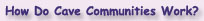 Most of us live in a community, with other human beings. If we consider communities in the natural world, we define those as an association of interacting species within a given physical area. The boundaries of a community may be difficult to define precisely in nature, but in caves that becomes much easier because caves have well-defined boundaries.